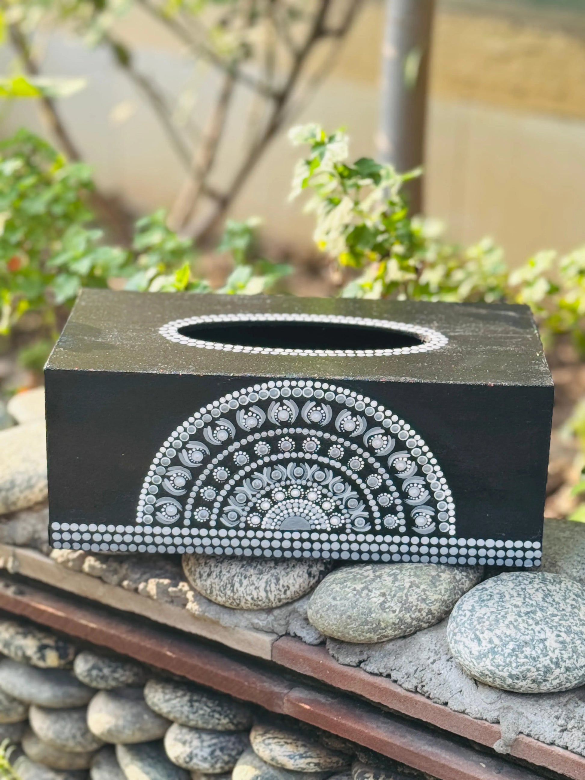 Elevate your everyday essentials with The Grey Mist—a beautifully crafted hand-painted tissue box that blends functionality with artistic finesse. Designed on a durable fiber board base and adorned with soft, misty grey acrylic strokes, this piece exudes understated sophistication.
